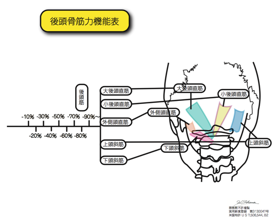 最後に、頚の前部、胸鎖乳突筋と前斜角筋を特殊治療により筋肉を緩解させる。後頭部の筋肉部位も特殊療法により弛緩させる。